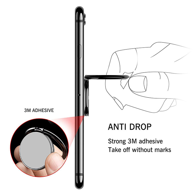 Mobiltelefonhållarens telefonring: högkvalitativ zinklegering och rostfritt stål, stark 3M lim hjälper till att förhindra att telefonen tappar och 180 graders vikningsdesign gör det bekvämt att röra skärmen så bred som möjligt med en hand utan svårigheter.